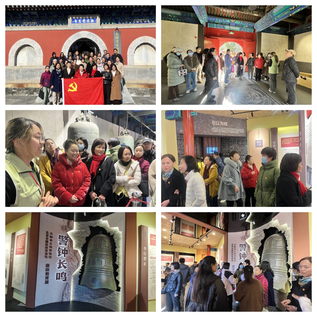 为加强党员廉政教育,校医院直属党支部于2024年11月22日中午组织党员和统战人员赴北京市廉政教育基地大钟寺古钟博物馆开展“感悟历史 警钟长鸣”主题党日活动,借古钟文化传递廉洁之声,为党员筑牢廉洁的思想防线。