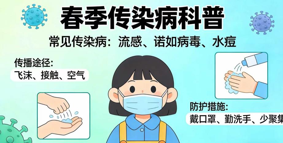 春天气温波动大、病菌繁殖快、人群多聚集等因素也让春季成为呼吸道传染病的高发期。为帮助大家科学防护,校医院特地整理了这份春季呼吸道传染病防护小知识。