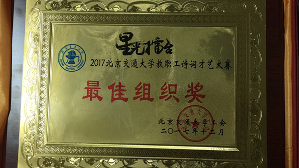 校医院获得2017年北京交通大学教职工诗词才艺大赛最佳组织奖