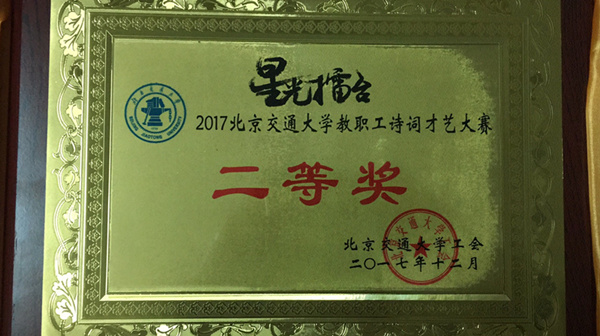 校医院获得2017年北京交通大学教职工诗词才艺大赛二等奖