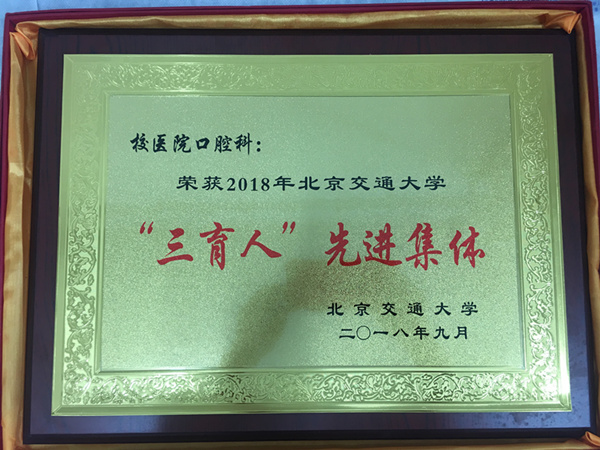 校医院口腔科获得2018年北京交通大学“三育人”先进集体