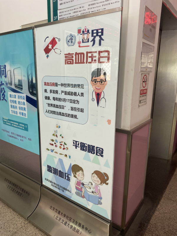 在2020年5月17日“世界高血压日”来临之际,围绕今年的活动主题,北京交通大学社区卫生服务中心开展了系列宣传活动。